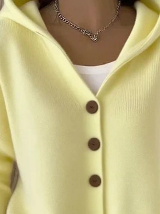 Full Size Hooded Button-Front Soft Knit Cardigan Plus Size